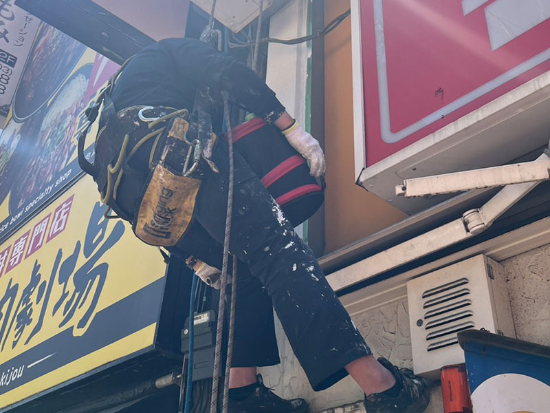 ロープ作業での外壁塗装により、足場を組まずスピーディーに施工。高所でも安心して美しく仕上げました。